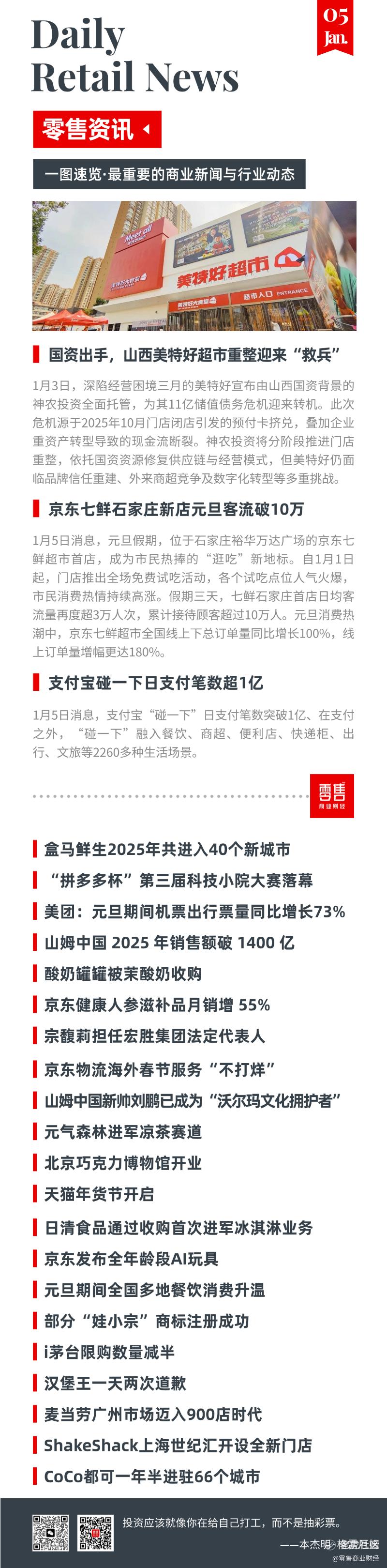 1月3日,深陷经营困境三月的美特好宣布由山西国资背景的神农投资全面托管,为其11亿储值债务危机迎来转机。此次危机源于2025年10月门店闭店引发的预付卡挤兑,叠加企业重资产转型导致的现金流断裂。神农投资将分阶段推进门店重整,依托国资资源修复供应链与经营模式,但美特好仍面临品牌信任重建、外来商超竞争及数字化转型等多重挑战。