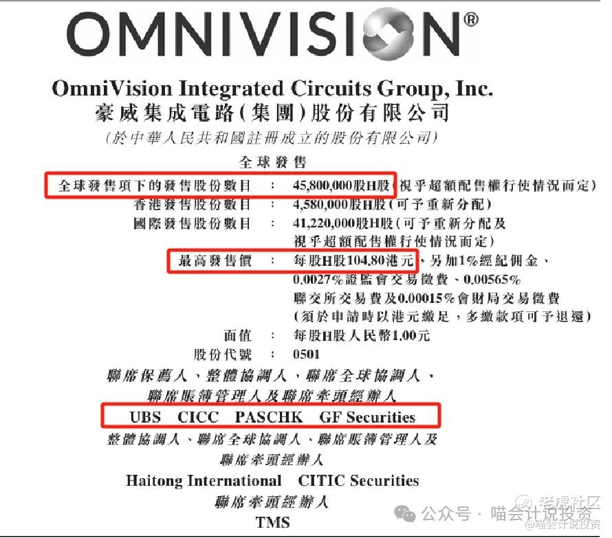 2025年12月31日,豪威集团 (00501.HK) 正式启动香港招股,招股日期至2026年1月7日,拟全球发售4580.00万股H股,每股招股价104.80港元,每手买卖单位100股,预期将于2026年1月12日在港交所主板上市。