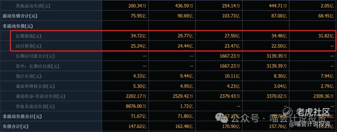 长短期借款和应付债券等加起来,也差不多100亿。