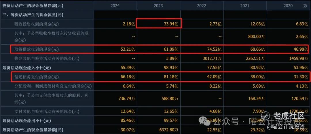 银行借款进进出出,2022年(含)之前的净借入的,2023年(含)之后净还款了;
