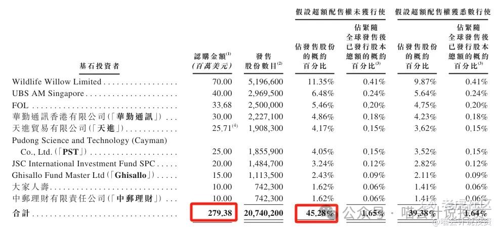 基石投资者:10家机构,合计认购约45.28%。