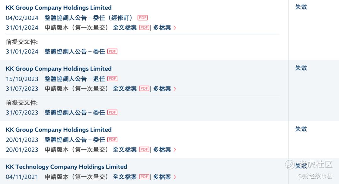 概念看似引人,但KK集团的资本之路却并不顺畅。自2021年首次向港交所递交招股书以来,KK集团已四次冲刺上市。2024 年 1 月 31 日,KK 集团第四次提交 IPO 申请,但目前其招股书已失效。