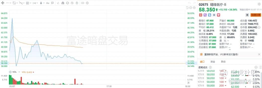 $精锋医疗-B(02675)$ 精锋本身就是基本面异常优秀的公司,非常牛逼。从暗盘情绪看,公司比微创更强,目前223亿市值81倍PS,比微创机器人的79倍略高,很正常毕竟精锋今年内地中标16台比微创的图迈的14台稍多,而且海外放量很不错,策略是首日暗盘出货均可,公司中线逻辑是比较清晰的,后续可能有爆点。