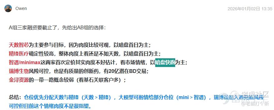 ①大家可能更关心Minimax会不会受智谱影响,结论只能说筹码面上会有些,但是公司基本面显著好于智谱,会有一定支撑,只要天数首日表现OK就行。