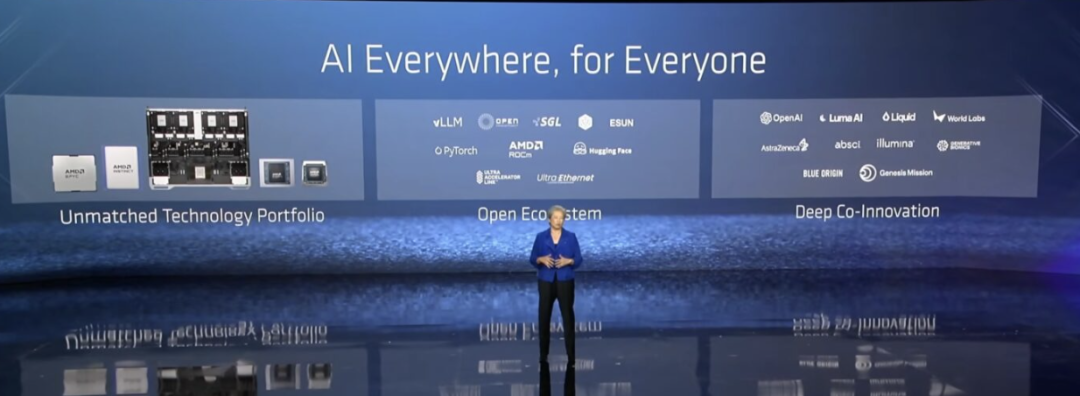 ROCm 也在演讲中被反复提及,这是为AMD 区别于竞争对手的“开放性”核心。