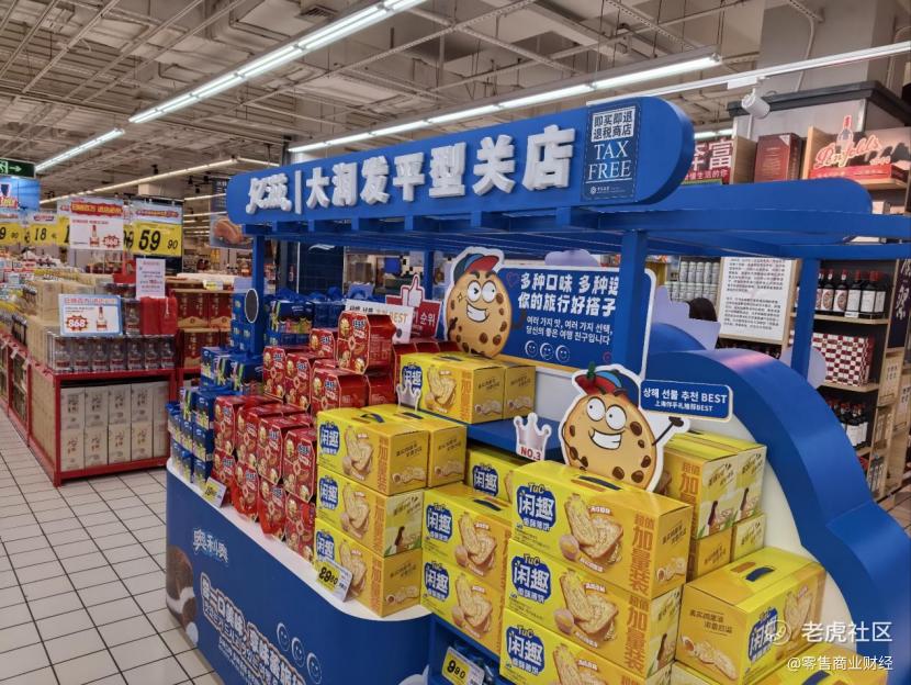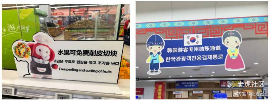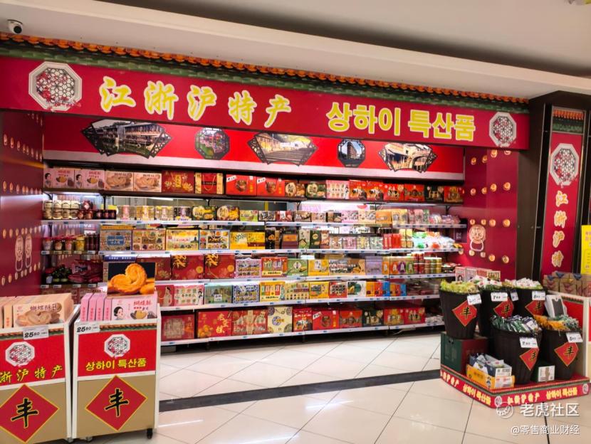 为接住这波入境游红利,大润发平型关店从商品、服务、支付等多维度进行优化,让韩国游客感受"宾至如归"的体验。商品陈列上,专门开辟韩国游客专属区域,将郑容和同款凤梨酥等热销品集中摆放,奥利奥礼盒等女性偏好商品置于黄金视线高度,酒区设置专属展陈台并提供免费试喝服务。 语言与支付障碍的破除更让体验感升级,店内动线指示、商品说明、服务提示均配备中韩双语标识,循环播放双语导览;开设韩国游客专用结账通道,支持Kakao Pay、UnionPay等常用支付方式,更推出Kakao Pay支付满300减25元的专属优惠。作为上海超市首个推出离境退税即买即退服务的门店,联合中国银行实现满200元可享9%即时退税,九成服务于韩国游客。出口处的中韩双语打车指南,详细标注了前往两大机场的预估车费,成为游客必备参考。