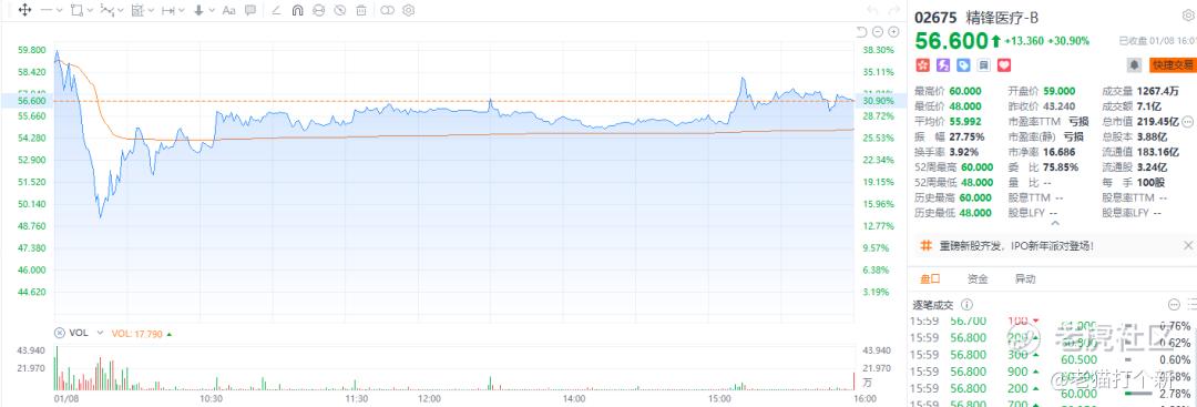 【精锋医疗】这家公司我是非常喜欢的,基本面实在太优秀了,暗盘收涨39%,首日收涨30%,目前的估值和微创机器人齐平,市场化严格对标,算仍有一定发挥空间。