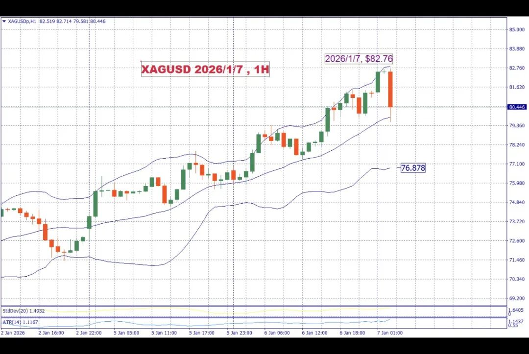 →到了今晨,开盘之后白银最高升至82.76,而前期虚高在2025/12/29的$83.97。