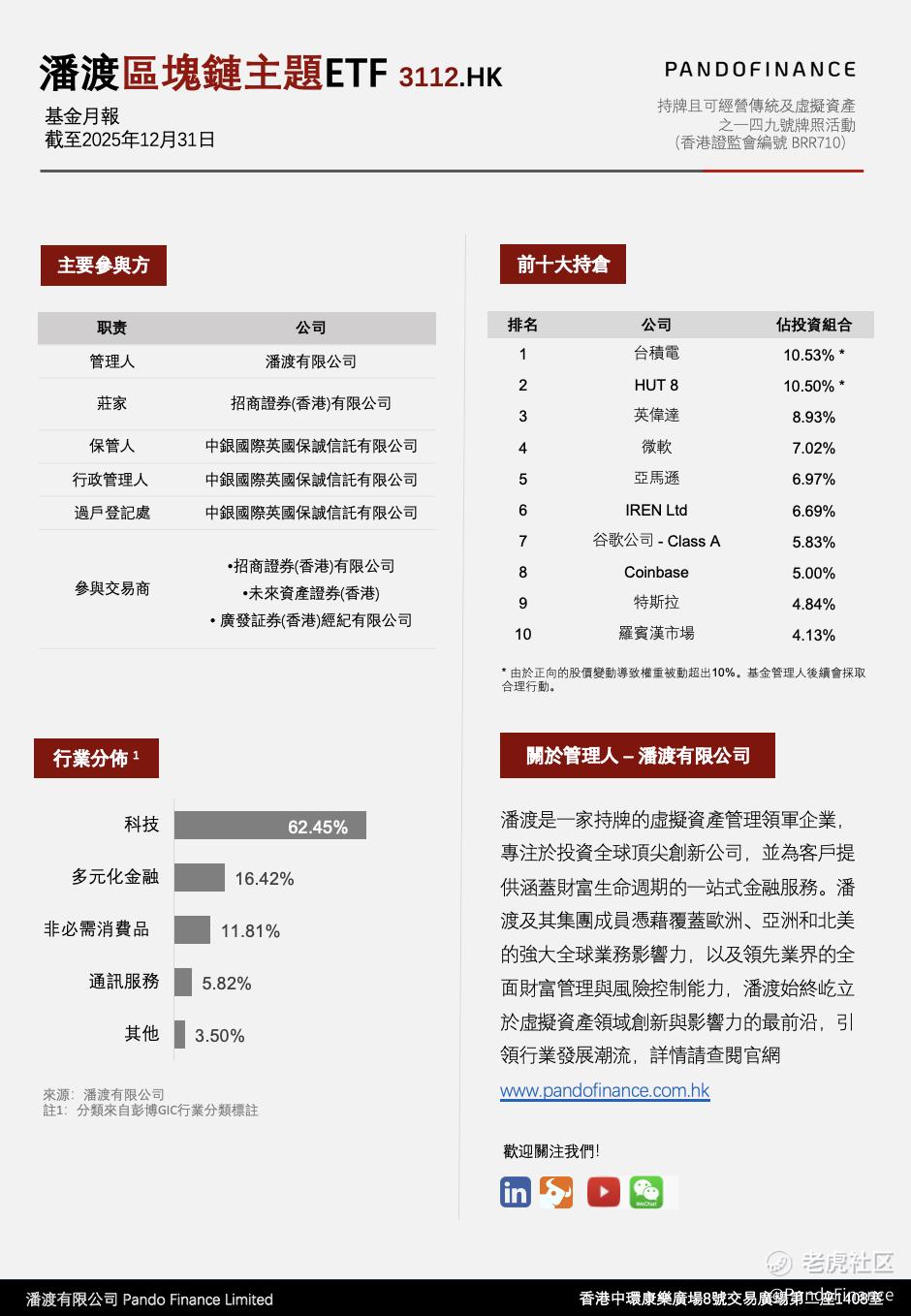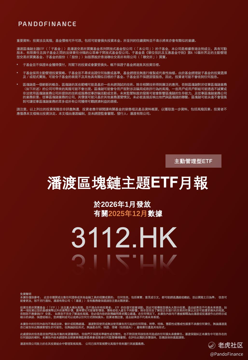投资本基金前,投资者应参阅刊登于公司官方网站与港交所网站上披露的基金章程,全面细阅每一项风险因素。具体公司数据与该产品ETF之基金章程与具体风险披露,请参看www.pandofinance.com.hk本月报并不构成对于任何证券或基金的买卖或进行任何交易之邀约或任何投资建议。本资料之发行人为潘渡有限公司。此数据并未被香港证券及期货事务监察委员会所审阅。