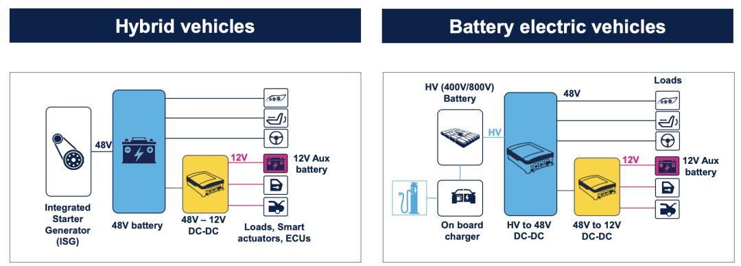 如下图所示,之前为48V混动考虑的系统,现在为电动汽车上考虑的48V负载非常合拍。