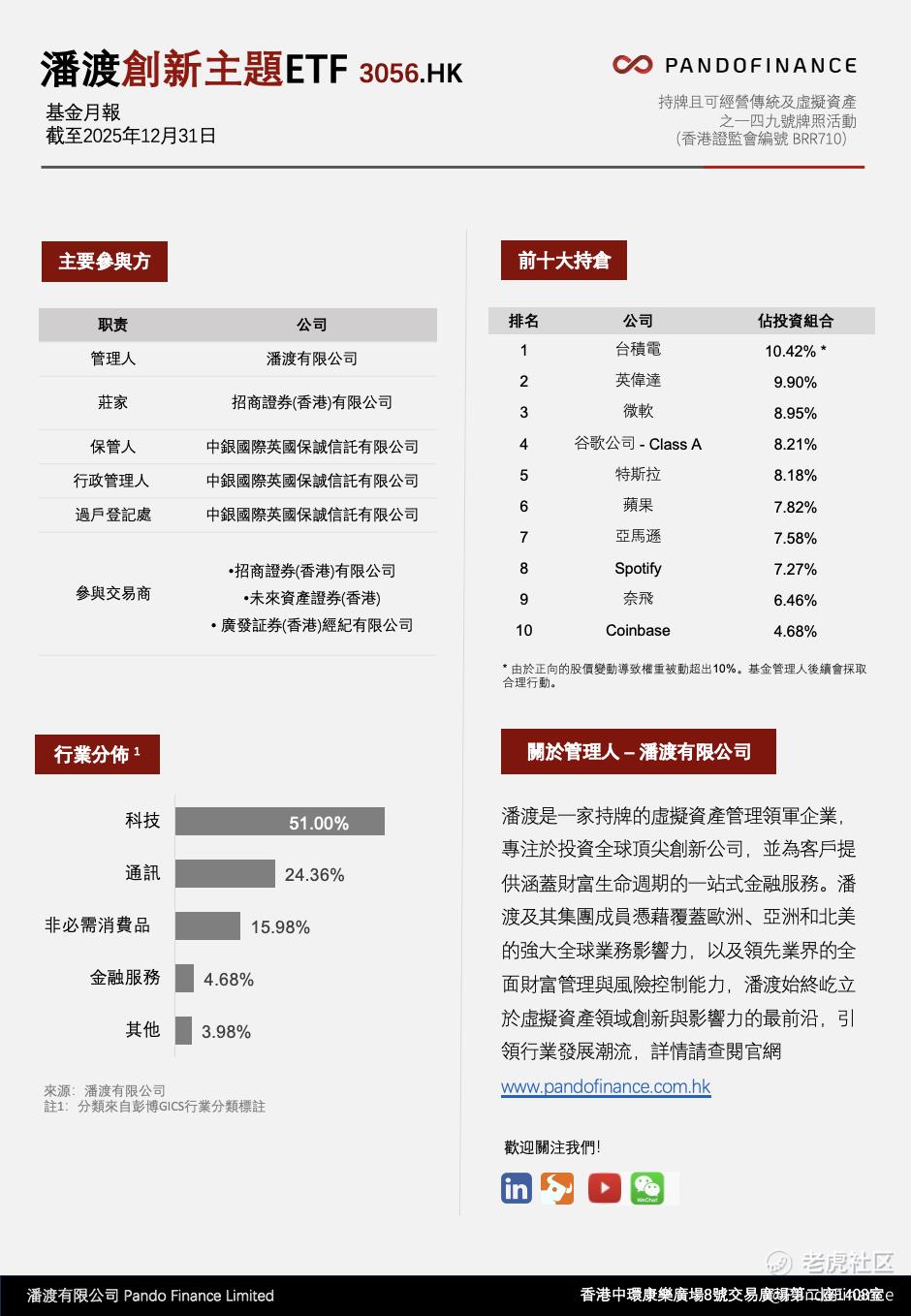 投资本基金前,投资者应参阅刊登于公司官方网站与港交所网站上披露的基金章程,全面细阅每一项风险因素。具体公司数据与该产品ETF之基金章程与具体风险披露,请参看www.pandofinance.com.hk本月报并不构成对于任何证券或基金的买卖或进行任何交易之邀约或任何投资建议。本资料之发行人为潘渡有限公司。此数据并未被香港证券及期货事务监察委员会所审阅。