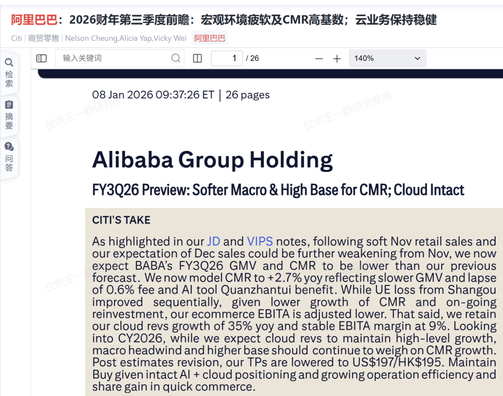 这个符合我们的预期,而且几个花旗、大摩等几家外资投行晚上都把阿里巴巴的目标价下调了。