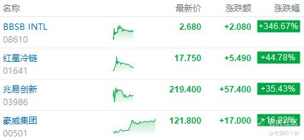今天只论涨幅看,BBSB翻三倍涨的最多,红星一度翻倍回落至50%,而兆易涨35+%算AH表现里极其不错的了!