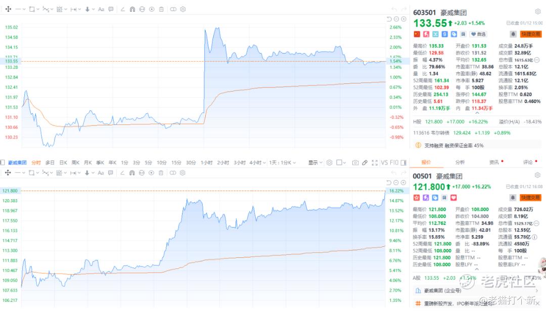 原因也很简单,孖展低申多少有多少,1手中签率100%,甲尾10手/乙头43手,算上融资10倍,就算16%看着不多,这么多货也赚麻了。不过今天首日盘中这个走势还是有资金的影响因素在的,港股11:35就开拉,A股只能午后启动,不过两者幅度差距很大,不算完全市场化,目前看这18%的折价也算很惊人,大幅领先目前市场消费电子25~35%的范围。