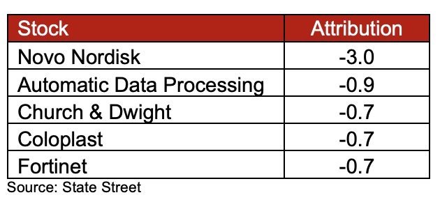 在投资操作上,我们在年内卖出了布朗-福曼(Brown-Forman)和百事公司(PepsiCo)的持仓,并开始买入硕腾(Zoetis)、依视路陆逊梯卡(EssilorLuxottica)、Intuit和威科集团(Wolters Kluwer)。