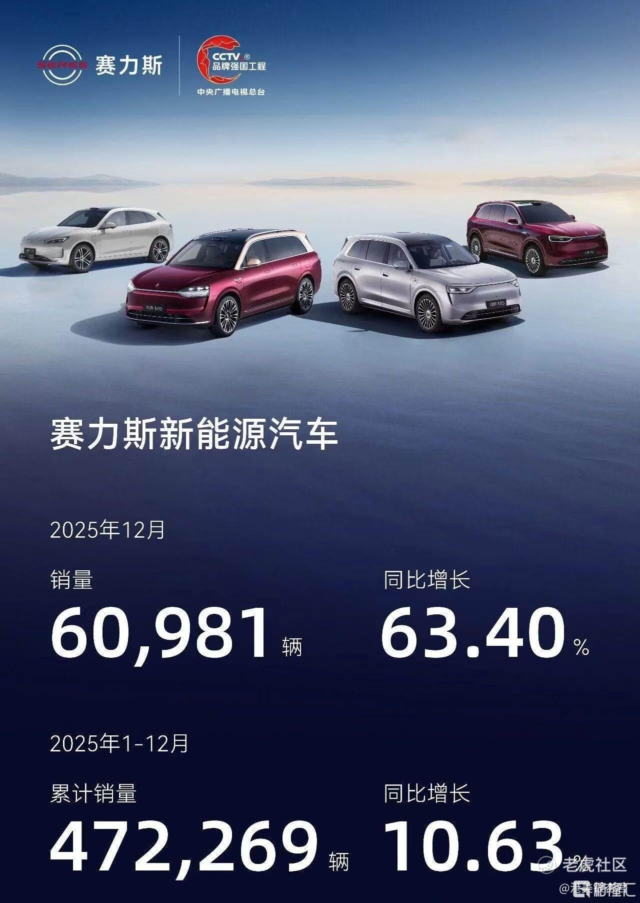 在品牌角力愈发激烈、行业加速洗牌的背景下,赛力斯交出了一份亮眼的答卷:12月新能源汽车销量达到60981辆,同比激增63.40%,首次突破6万,且连续三个月单月销量突破5万大关;全年累计销量472269辆,同比增长10.63%,创下年度销量新里程碑。