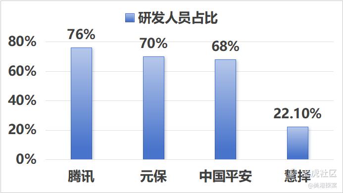 三、技术人才布局:元保研发人员占比近70%,AI团队规模超员工总数 10%,不仅高于同业公司,即便和互联网科技巨头相比,元保的研发人员含量也很突出。而且像平安、慧择这样的公司,传统IT团队的占比还是会更多一些。