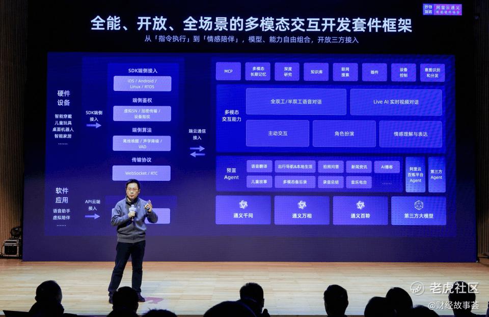 阿里云刚刚发布的多模态交互开发套件,集成了通义千问(大语言)、通义万相(多模态)、通义百聆(声音)三款基础大模型,并预置十多款生活休闲、工作效率等领域的Agent和MCP工具,不仅能听、会看,还能思考并且与物理世界交互,可应用于AI眼镜、学习机、陪伴玩具、智能机器人等全品类硬件设备。