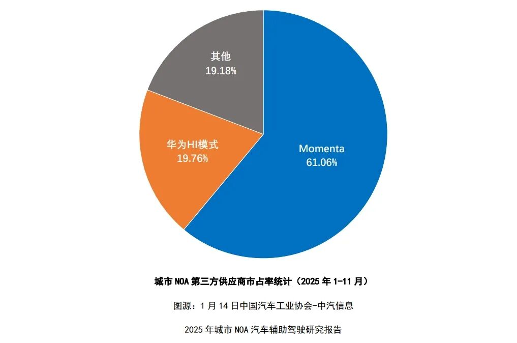 而企业竞争都在强调四季度要盈利的时候,执着于自研的思路也被车企慢慢放下,所有的车企要有这个功能,第三方智驾供应商的角色变得尤为关键。报告显示,Momenta在2025年城市NOA第三方市场的市占率超过60%,与**形成“双强格局”。