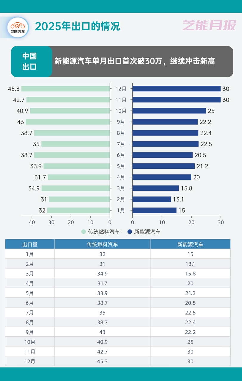 ◎ 传统燃料汽车方面,12 月出口 45.3 万辆。