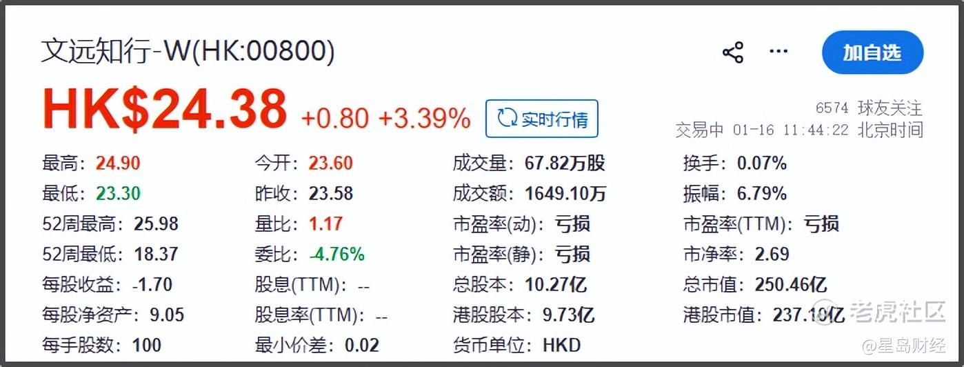 截至1月16日12时左右,文远知行报2438港元/股,市值250.46亿港元。