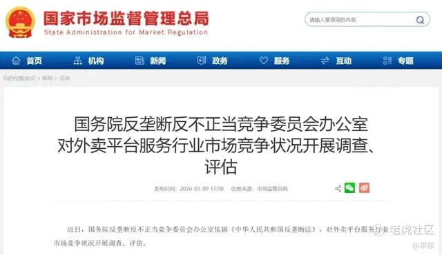1月9日,国务院反垄断反不正当竞争委员会办公室(简称“双反办”)宣布,将对外卖平台服务行业市场竞争状况开展调查、评估。