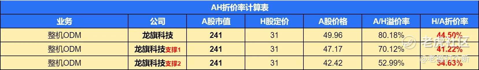 先说【龙旗科技】今日AH折价,44.5%,还有空间!附带下两条支撑对应的折价率!