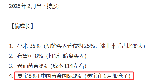 2)金银铜矿股。1月开始买入黄金股(灵宝黄金8%+中国黄金国际3%),同时开始涉足有色金属的投研。