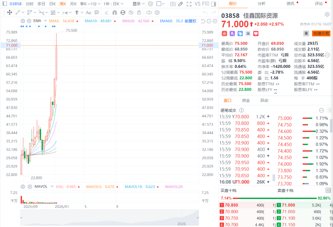 8月,佳鑫国际资源,钨矿股,有色资源股牛市,暗盘102%/首日177%,只是开始,一直涨到现在,累计涨了6倍多了。