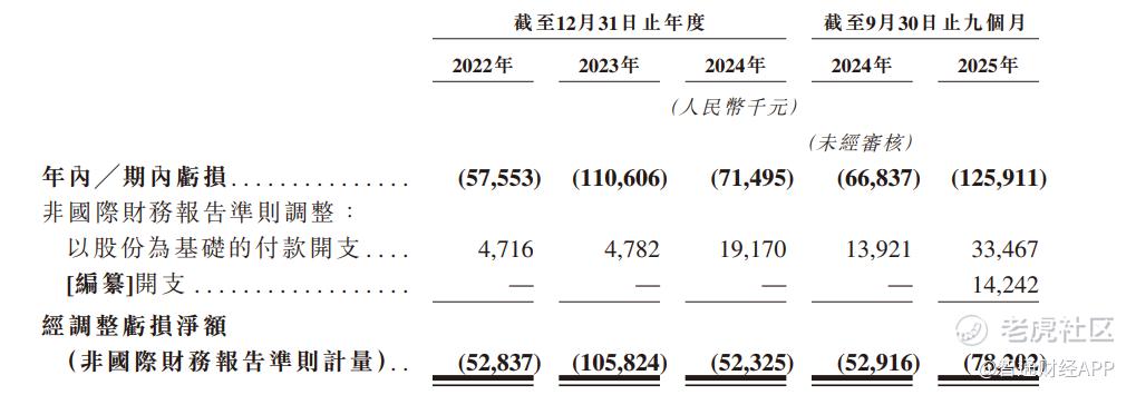 但从业绩来看,翼菲科技收入端虽稳健成长,但其利润端持续亏损,2022 至 2024 年的经调整净亏损分别为 5283.7 万 (人民币,下同)、1.06 亿、5232.5 万。且 2025 年前三季度,其经调整净亏损从 5291.6 万扩大至 7820.2 万元,这意味着翼菲科技在三年零九个月中累计亏损约 2.89 亿元。