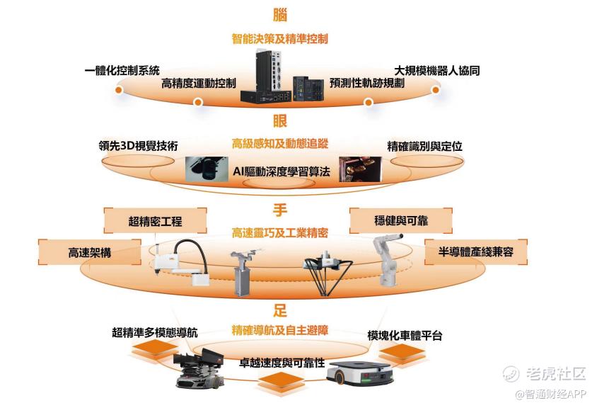 而支撑公司产品与方案体系的,是翼菲科技独特的机器人架构,其围绕 “脑、眼、手、足” 四大核心功能构建,模拟熟练技工的操作逻辑,从而实现智能决策、环境感知、精确操控及自主移动。这四大功能协同构成可扩展的技术底座,让机器人在复杂场景中也能灵活应变。
