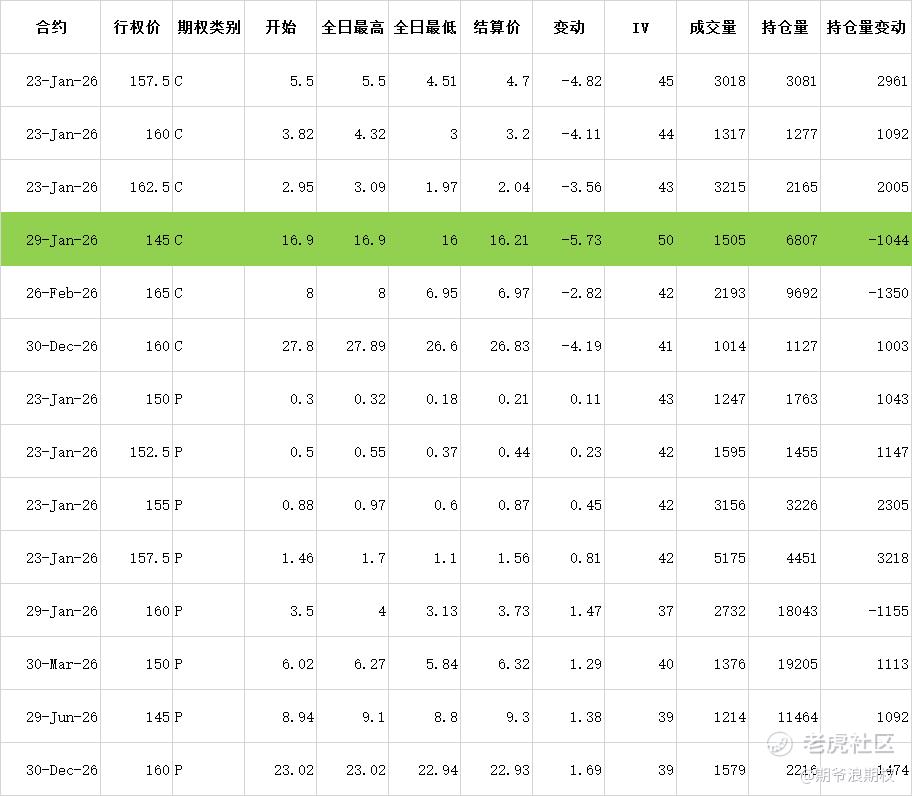 (2)阿里:1月最大持仓范围150-160,窝轮牛熊街货分布135-165,今收160.4,下跌3.49%。期权盘路变化超过1000张的仓位如下,浅绿色是深度实值减仓。阿里大户们今天很有热情,短期大概率窄幅震荡,但是比腾讯乐观一些。
