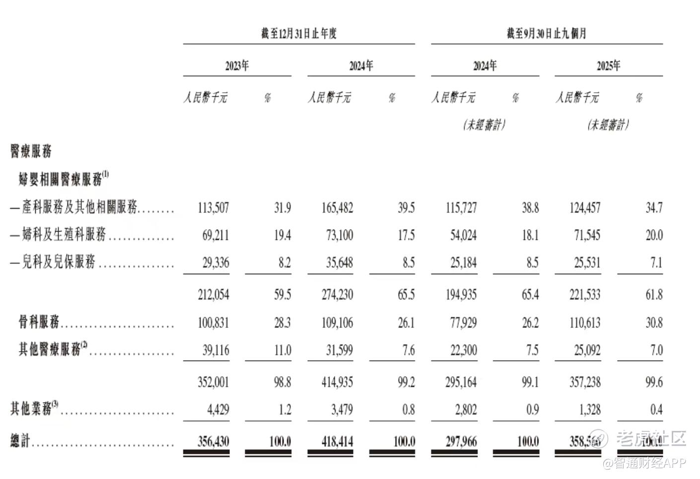 根据智通财经 APP 观察,莲池医院的收入长期由 妇婴医疗” 与 “骨科服务” 两大板块构成,但两者的增长态势已出现显著分化。