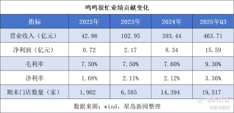 2022—2024年,鸣鸣很忙营收从42.86亿元增至393.44亿元,年复合增长率接近203%,2025年前三季度增长至463.71亿元;期内毛利率从7.5%升至9.3%,净利率则从1.68%升至3.36%,盈利能力有所修复。