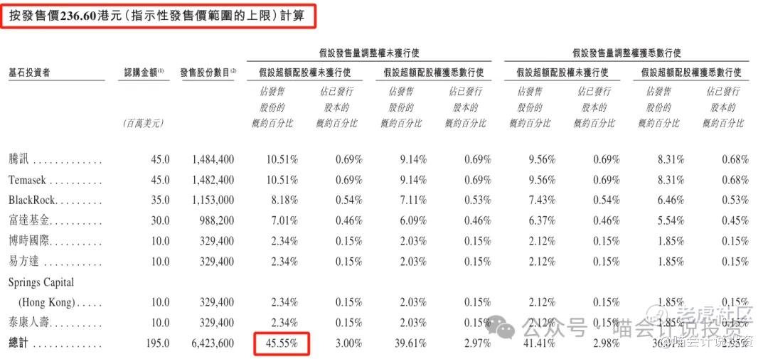 基石投资者:腾讯、淡马锡、贝莱德、Fidelity等8家机构,合计认购1.95亿美元,占约45.55%。