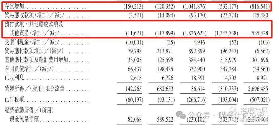 2024年一下子增加了18亿的预付和其他应收,到2025年才扭转回来一部分,导致2024年经营活动净现金流出了负数。