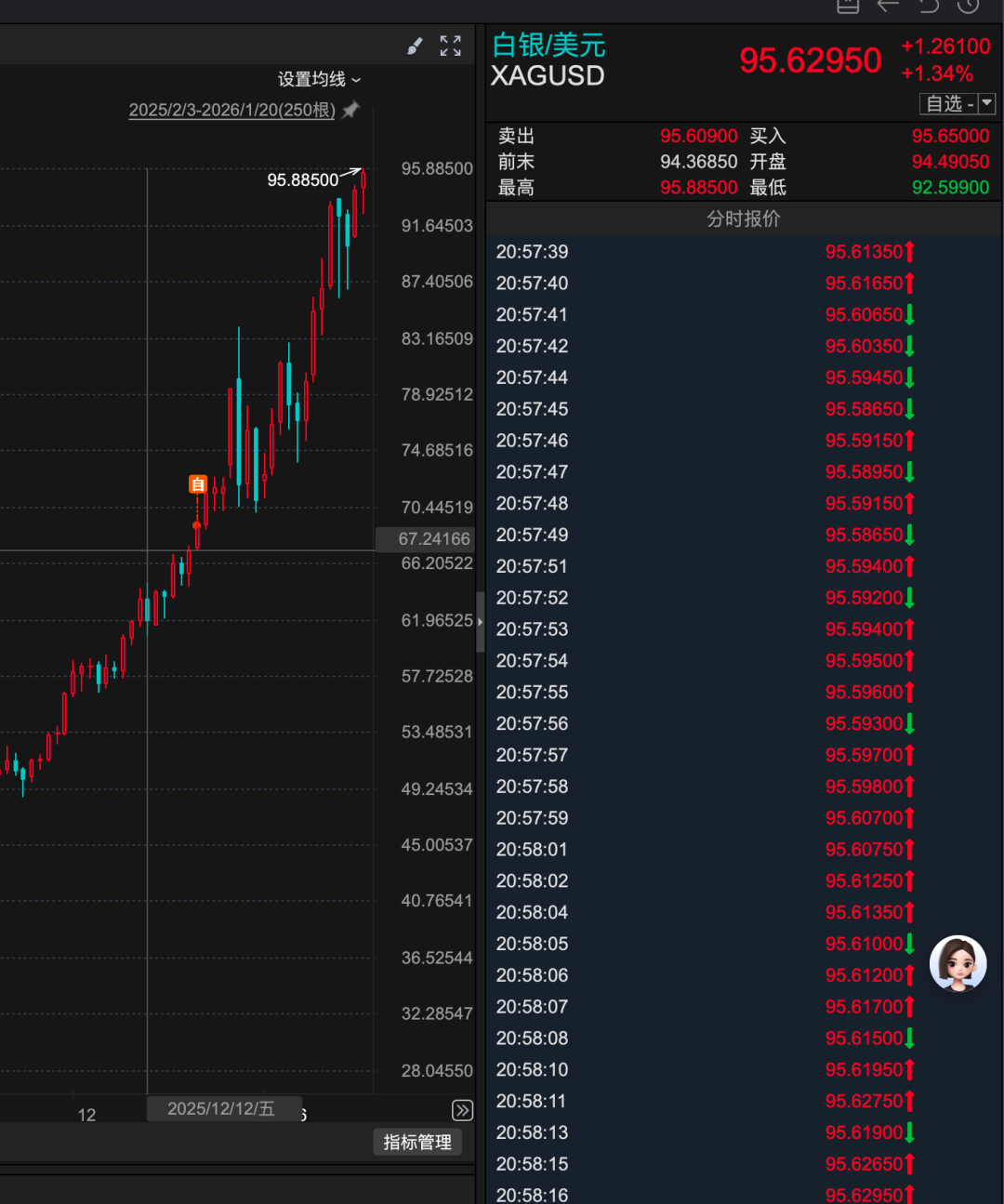 6. 【现货白银首次触及95美元/盎司 与黄金价格同创记录新高】