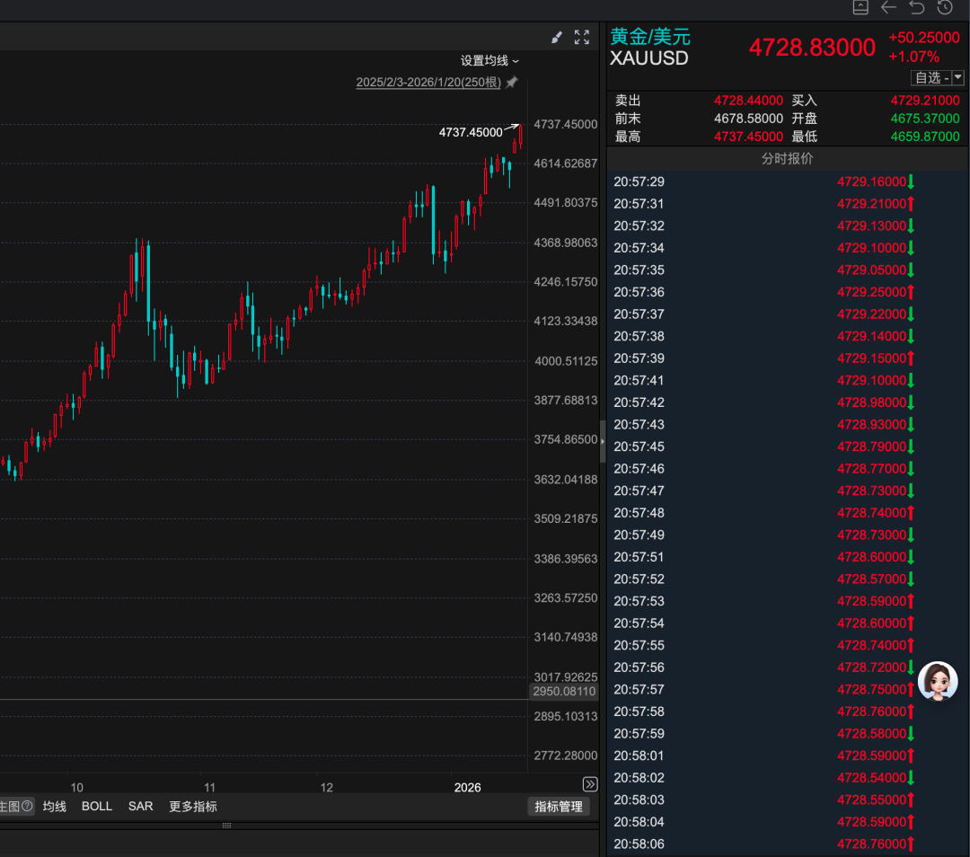 现货白银首次向上触及95美元/盎司,日内上涨0.81%,今年以来累计上涨33%。现货黄金涨1.23%,报4728.32美元/盎司,今年以来累计上涨近10%。二者继续刷新记录新高。