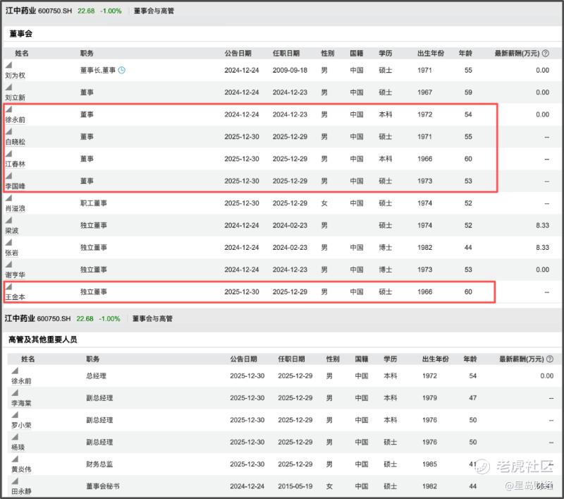 ▲江中药业现任董事及高管团队成员,来源:Wind金融终端