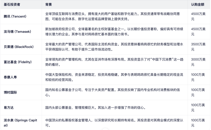 2、基石:合计认购1.95亿美元(约合15.2亿港元),占发售股份约45.55%。阵容豪华,这么多顶级机构看中一个中国的土味县域生意,反差也是蛮强烈的。
