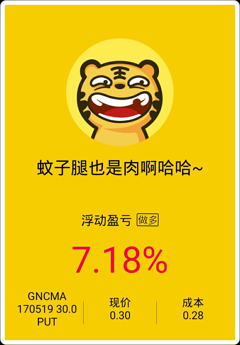 $GNCMA 20170519 30.0 PUT(GNCMA)$ #晒单有奖# 第一次玩期权,希望不要让我失望。