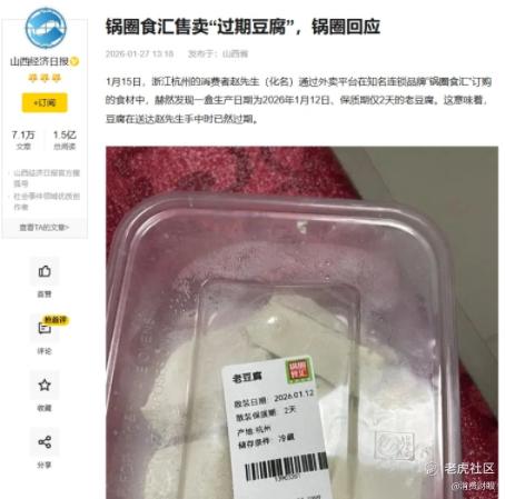 不久前,锅圈食汇被曝出“门店使用过期豆腐”的投诉,一时间引起舆论广泛关注。