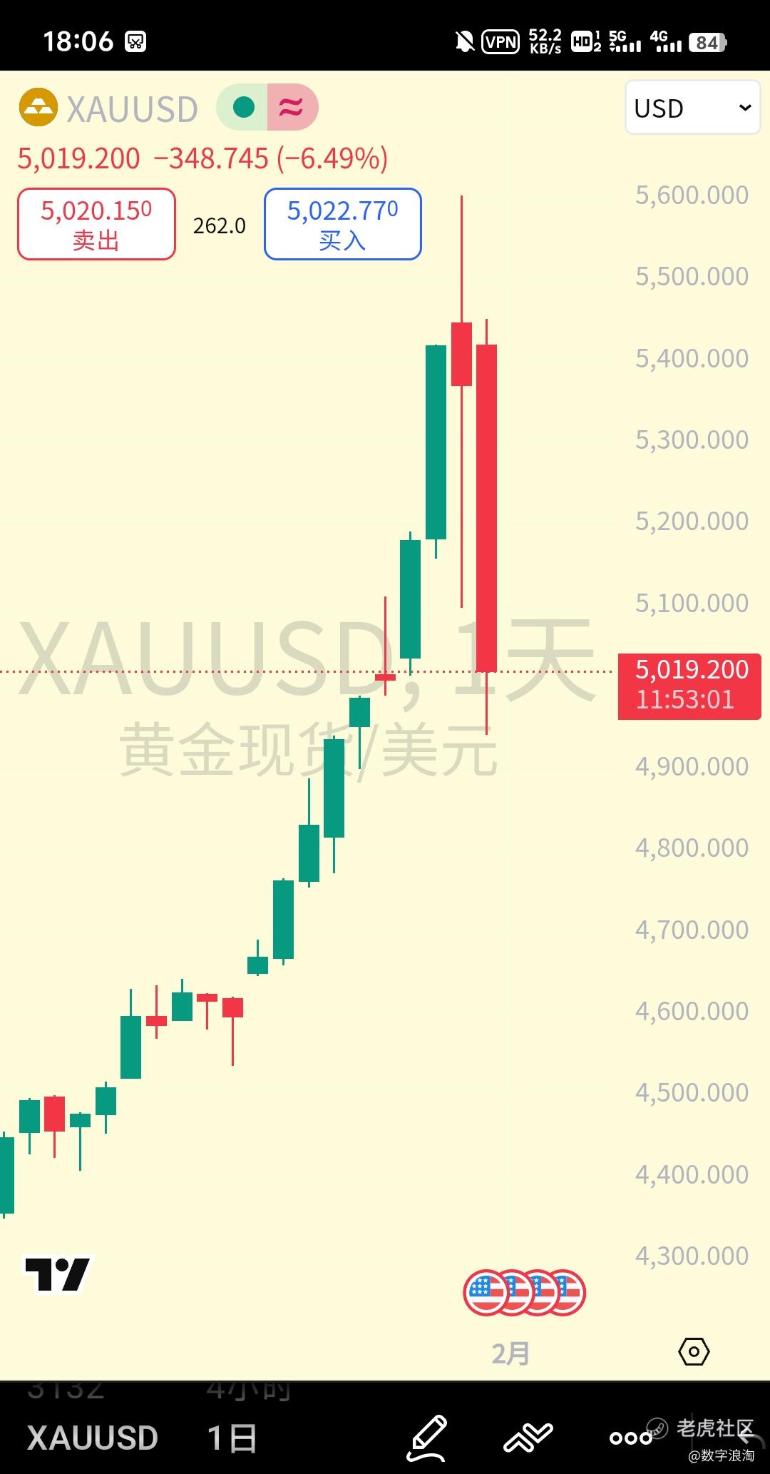而就在昨晚和今天(1月29日-30日),金价摸到 $5600 极致高点后,16小时内遭遇史诗级闪崩!今天继续宽幅震荡。