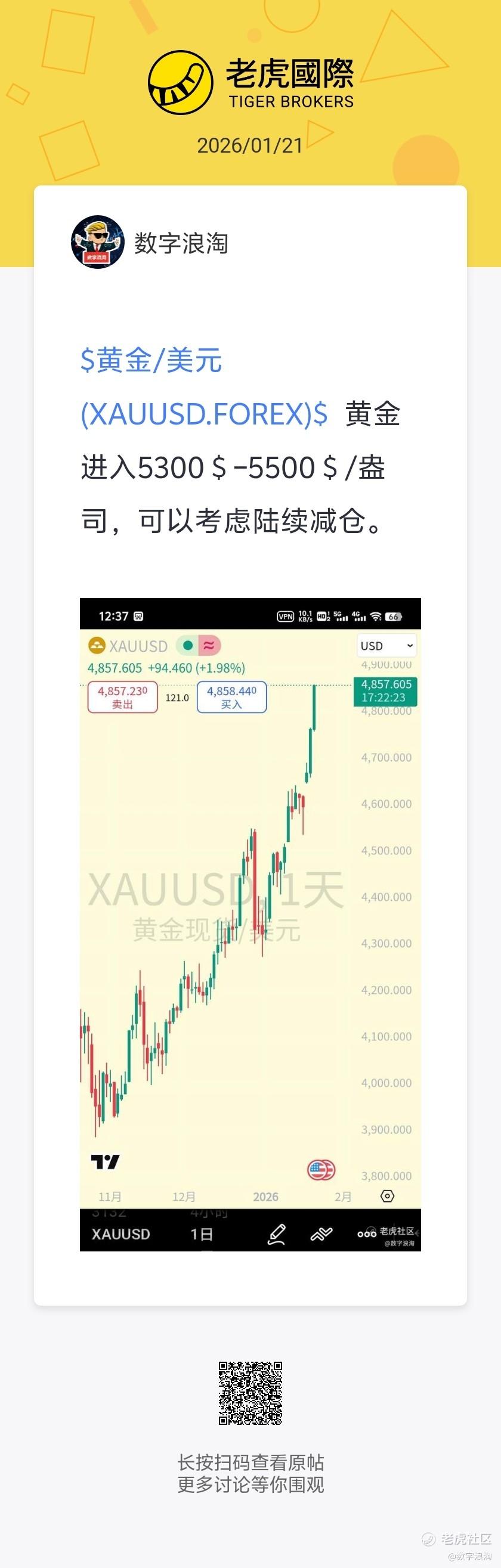 当1月21日金价触及 $4857,我逆势调整观点,明确给出 $5300-$5500 陆续减仓的信号。