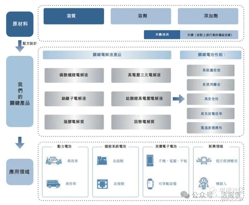 公司开发了全面的产品组合,涵盖动力电池、储能系统电池、消费电子电池及新兴应用的电解液。