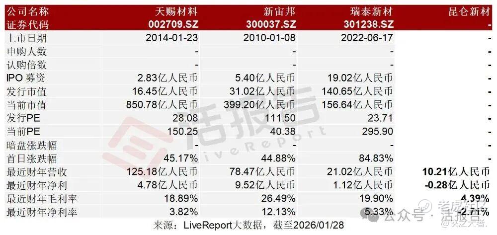 天赐材料(002709.SZ)、新宙邦(300037.SZ)、瑞泰新材(301238.SZ)