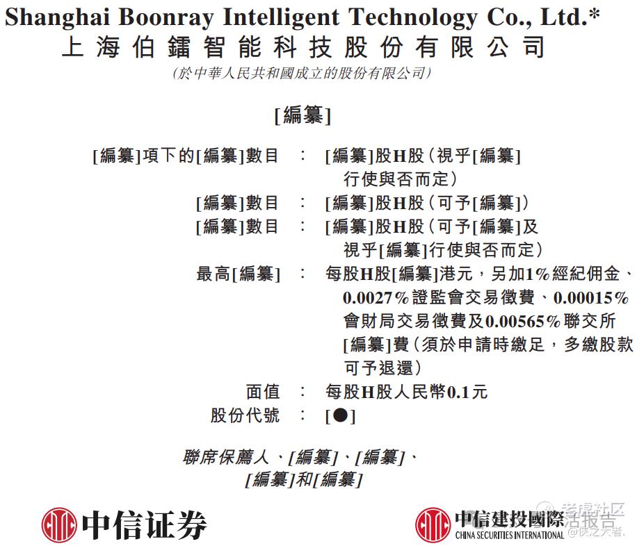 **获悉,上海伯镭智能科技股份有限公司Shanghai Boonray Intelligent Technology Co., Ltd.*(简称“伯镭科技”)于2026年1月29日首次在港交所递交上市申请,拟在香港主板上市。
