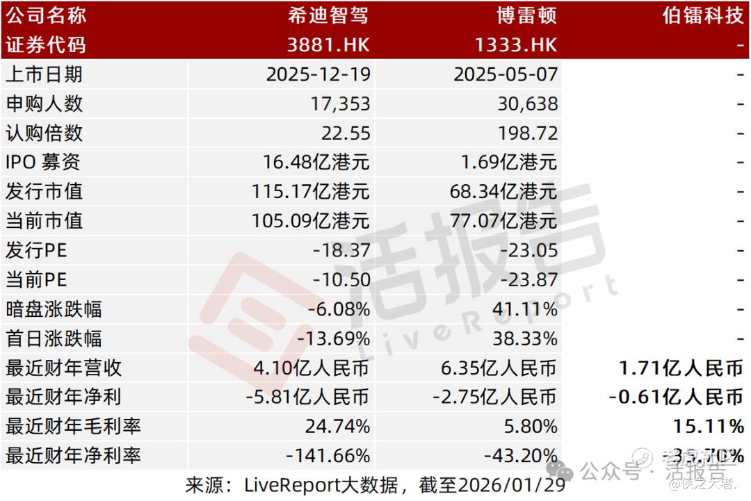 同行业IPO可比公司:希迪智驾(3881.HK)、博雷顿(1333.HK)