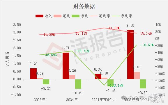 收入分别约为人民币0.70亿、1.71亿、0.34亿、3.15亿,2025年前9个月同比+819.90%;