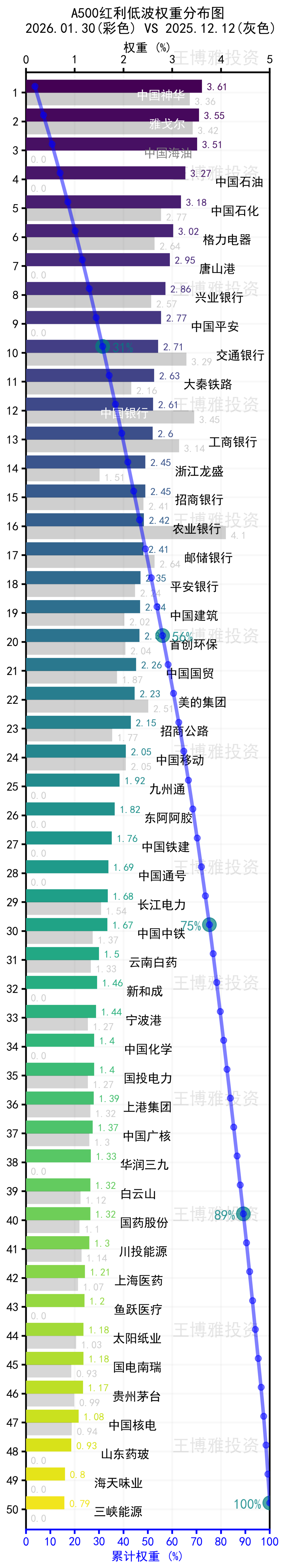 图3 A500红利低波成分股及其权重分布图(2026.01.30)